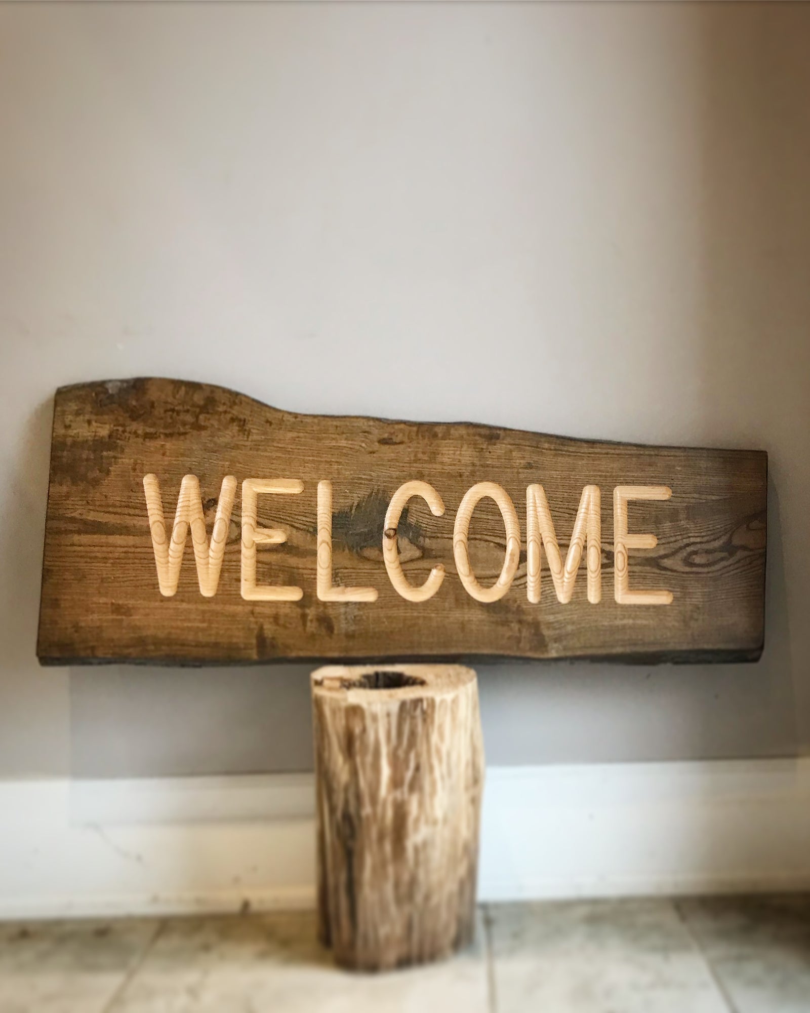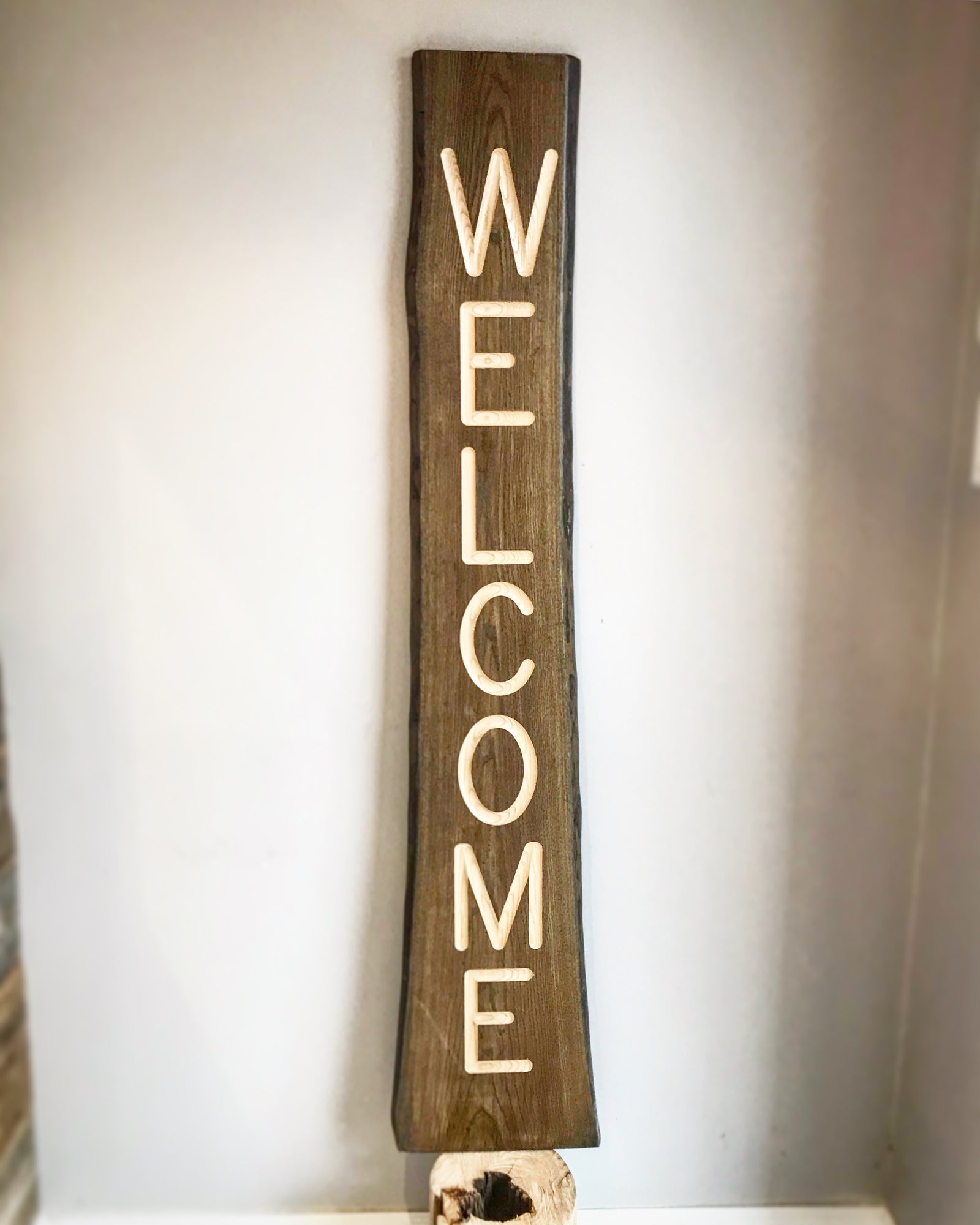Welcome Sign : Classic Collection : Engraved in Ash Wood : Vertical