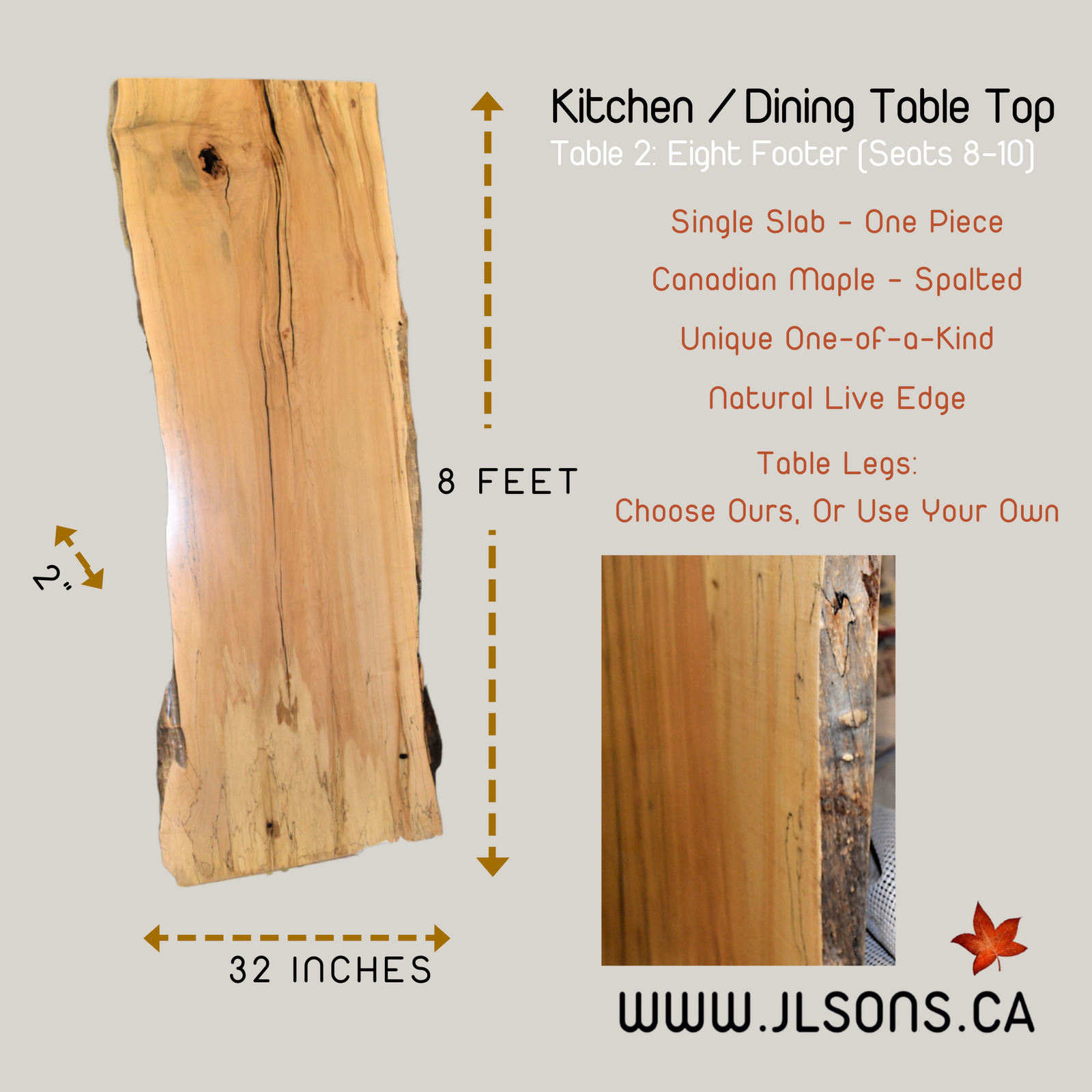 Maple Kitchen / Dining Table Top: 32" x 96" x 2" Spalted, Canadian Solid One Piece Slab