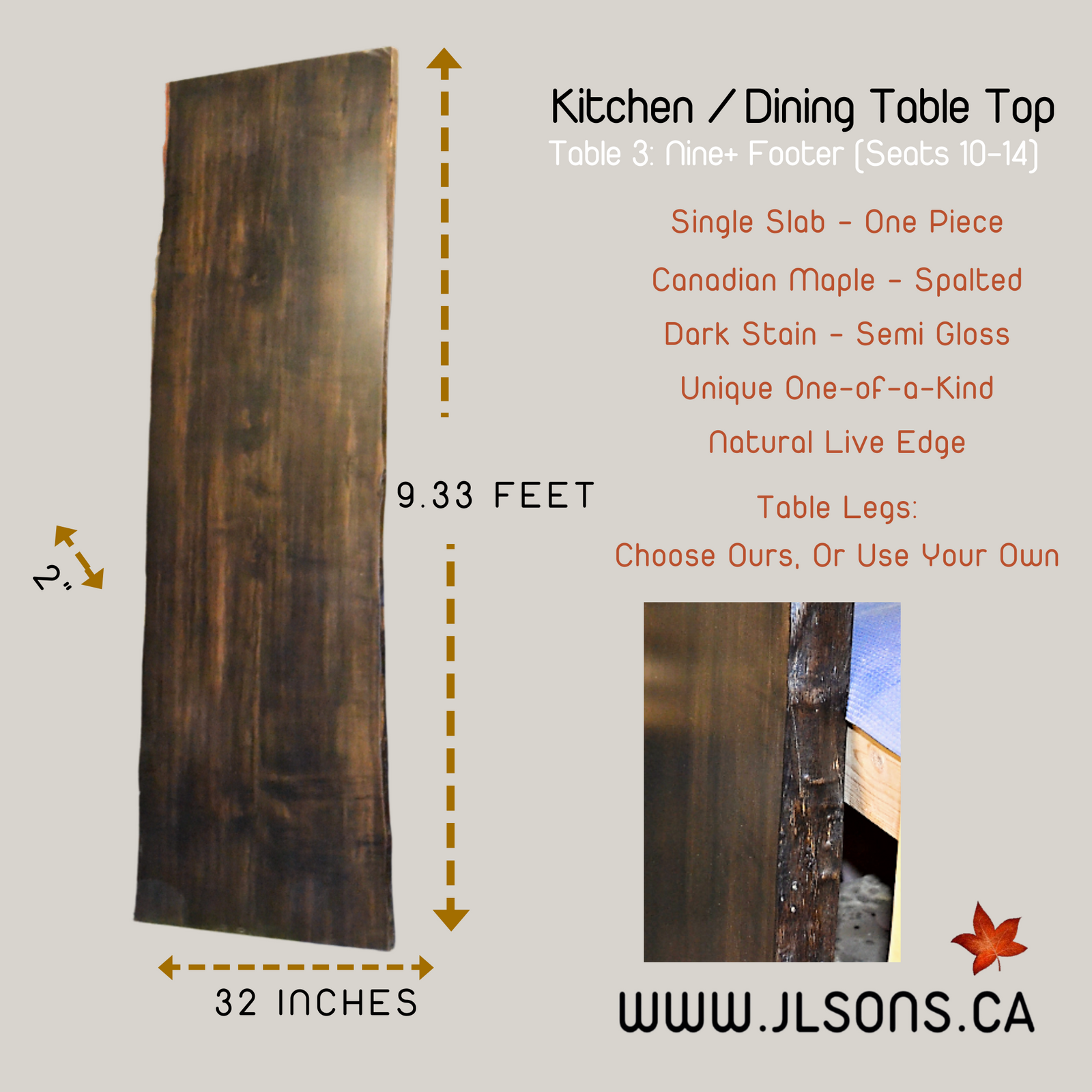 Maple Kitchen / Dining Table Top: 32" x 112" x 2" Spalted, Canadian Solid One Piece Slab